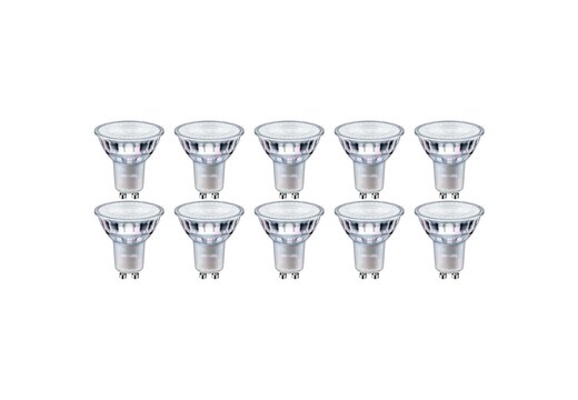 Ontdek de PHILIPS LED Spot GU10 10-pack: krachtige, energiezuinige vervanging voor 35W halogeenlampen met slechts 3,7W verbruik. Ideaal voor huis en bedrijf — direct helder licht en een complete set voor meerdere armaturen.